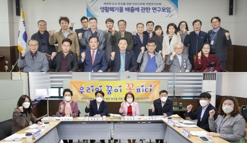 안산시의회 의원연구단체 ‘생활폐기물 배출에 관한 연구모임’과 ‘우리는 모두 꽃이다’가 18일 연이어 간담회를 갖고 연구과제 구체화에 나섰다.