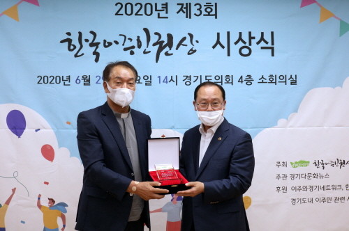 한국이주인권상선정위원회와 경기다문화뉴스가 주관한 ‘한국이주인권상’은 올바른 다문화사회 발전과 외국인 주민 지원을 위해 헌신한 인사에게 공로내용을 감사하고 격려하기 위해 제정된 의미깊은 상으로, 성준모 의원은 「경기도교육청 다문화 교육 진흥을 위한 조례」를 대표발의로 개정하고, 5분 자유발언을 통해 경기도 내 이주민가정 학생과 학부모에 대한 안정적이고 체계적인 교육지원 방안 마련에 힘쓴 공로를 인정받아 수상의 영예를 안았다.