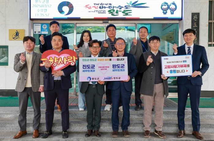 진도군 세무회계과는 지난 12일 완도군청에서 완도군 세무회계과와 고향사랑기부금을 상호 기부했다고 밝혔다.