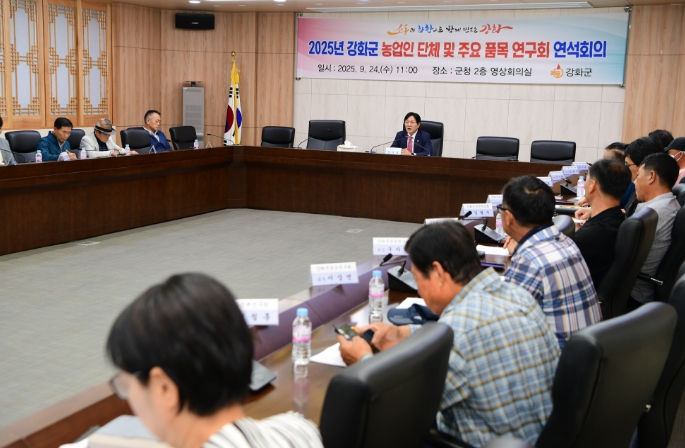 강화군은 지난 24일 관내 농업인 단체장과 주요 품목 연구회 대표들과 함께 연석회의를 열고, 가을철 수확기를 맞은 농산물의 고품질 유지와 농업 발전 방안을 모색했다.