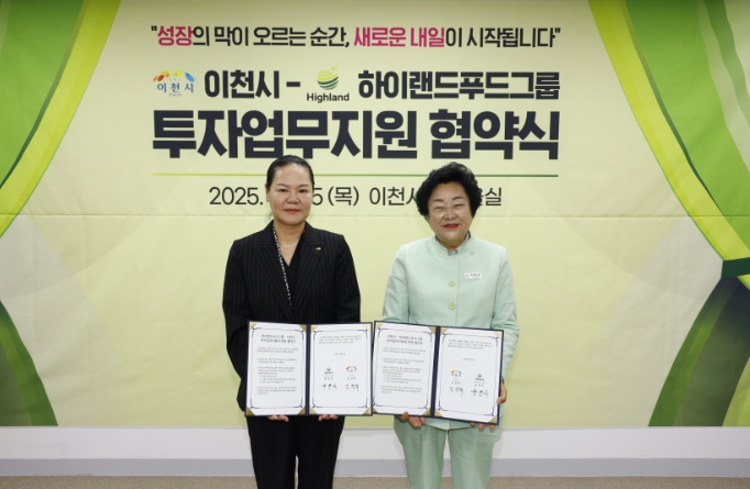 이천시는 15일 국내 대표 식품가공 전문기업 하이랜드푸드그룹과 신규 투자유치를 위한 업무협약(MOU)을 체결했다고 밝혔다.