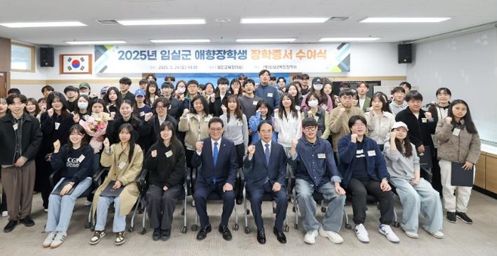 (재)임실군애향장학회가 지난달 29일 장학생으로 선발된 대학생과 고등학생 110명이 참석한 가운데, 2025년도 임실군 애향장학생 장학 증서 수여식을 개최했다.