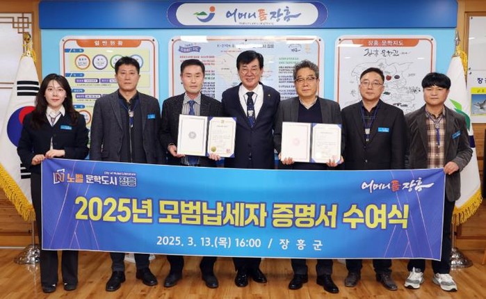 올해 장흥군의 모범납세자는 최근 3년간 체납 사실이 없고 연간 3건 이상의 지방세를 납부기한까지 전액 납부한 개인과 법인으이다.