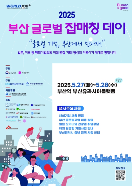 고용노동부 한국산업인력공단은 5월 27일, 28일 양일간 부산유라시아플랫폼(부산 동구)에서 '2025 부산 글로벌 잡매칭 데이'를 개최한다.
