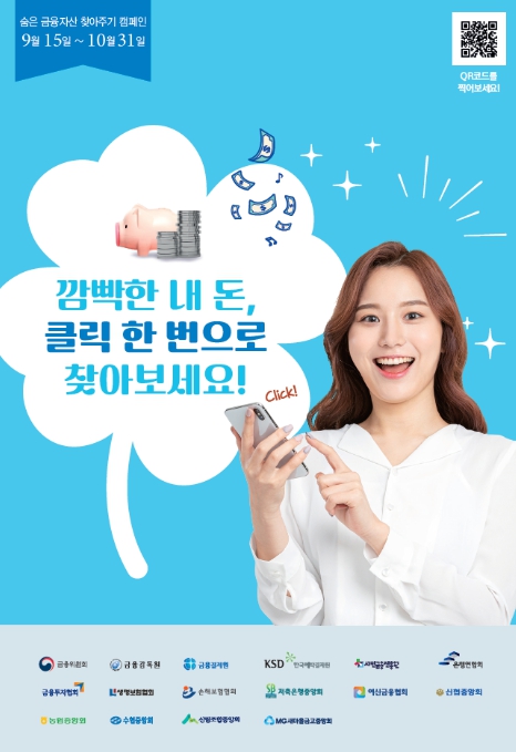 금융위원회와 금융감독원은 금융소비자가 ‘숨은 금융자산’을 보다 간편하게 조회하고 찾아갈 수 있도록 9월 15일부터 10월 31일까지 7주간 全 금융권과 함께 '숨은 금융자산 찾아주기 캠페인'을 실시한다.