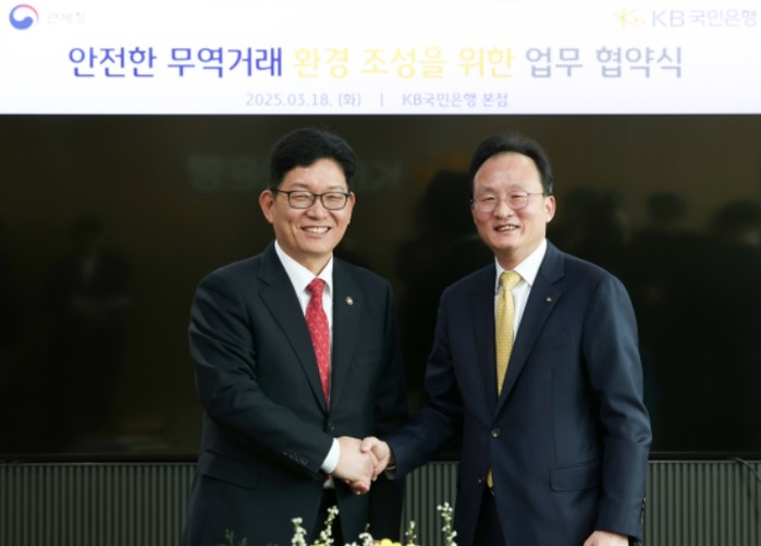 관세청은 3월 18일 여의도 국민은행 본사에서 고광효 관세청장, 이환주 KB국민은행장 및 양 기관 관계자들이 참석한 가운데 KB국민은행과 '민-관 데이터 기반 협력 업무협약(MOU)'을 체결했다.