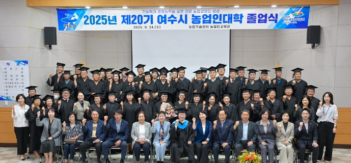 여수시는 지난 24일 농업기술센터 농업인교육관에서 ‘2025년 농업인대학 졸업식’을 열고 60명의 졸업생을 배출했다고 밝혔다.