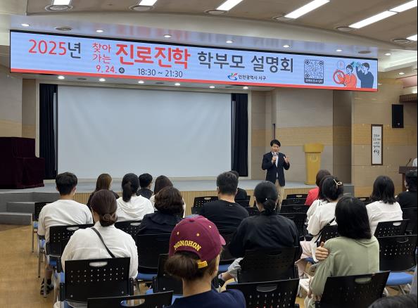 인천 서구는 지난 24일 서구청 지하대회의실에서 학부모 및 학생들이 참여한 가운데 2025년 찾아가는 진로진학 학부모 설명회를 개최했다.