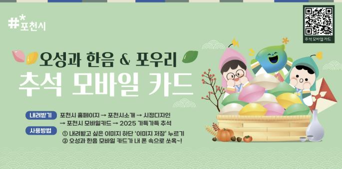 포천시는 지난 1일 민족 최대 명절 추석을 맞아 시민들이 감사와 따뜻한 마음을 손쉽게 전할 수 있도록 ‘추석 모바일 카드’를 무료 배포했다.