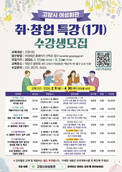 고양특례시 여성회관은 오는 27일부터 2026년 취창업 특강(1기) 수강생을 모집한다고 밝혔다.