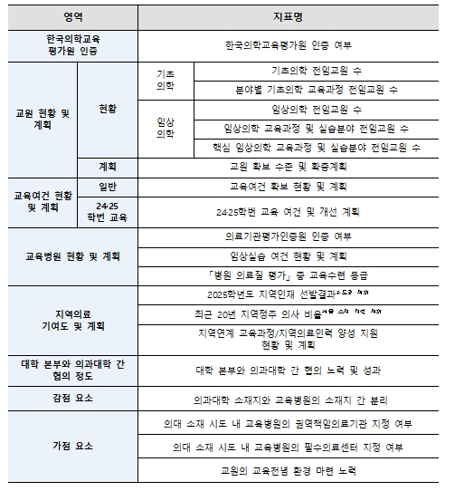 | ▲ 의과대학 학생정원 조정 평가지표 |