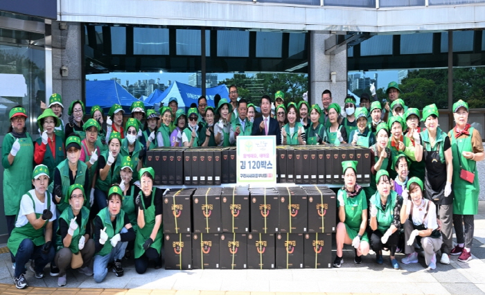구리시 새마을부녀회는 지난 2일 구리시청 민원 광장에서 소외되고 어려운 이웃들이 따뜻한 명절을 보낼 수 있도록 ‘함께해요. 새마을, 행복한 추석 김 전달 행사’를 개최했다고 밝혔다.