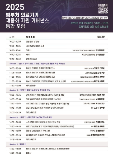 2025 범부처 의료기기 제품화지원 거버넌스 통합포럼 10월 23일 개최