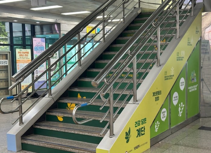 이번 ‘건강계단’ 조성은 보건복지부·한국건강증진개발원에서 실시한 비만예방 캠페인에 참여한 214개 지자체 가운데 목표 달성률 전국 1위를 기록, 6백만원 상당의 지원을 받아 이뤄졌다.