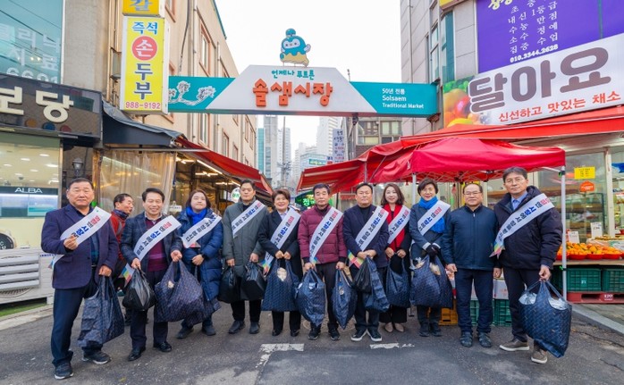이날 솔샘시장에서 의원들은 온누리 상품권을 이용해 명절 용품을 구매하고, 전통시장 상인들과 덕담을 나누며 그들의 애로사항을 청취했다.