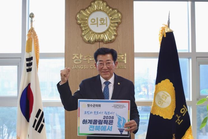| ▲ 장수군의회 최한주 의장, “2036 하계올림픽은 전북에서!” |