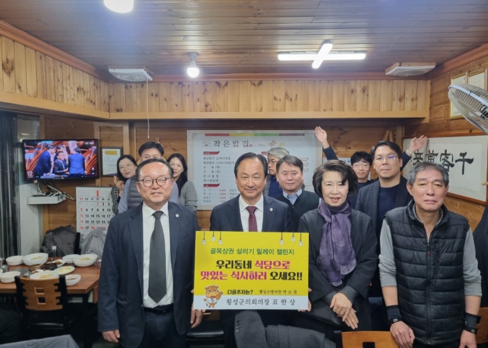 횡성군의회 의원과 의회사무과 직원들은 23일 횡성전통시장에서 점심을 함께하며 골목상권 회복을 위한 지역적 관심을 유도했다.