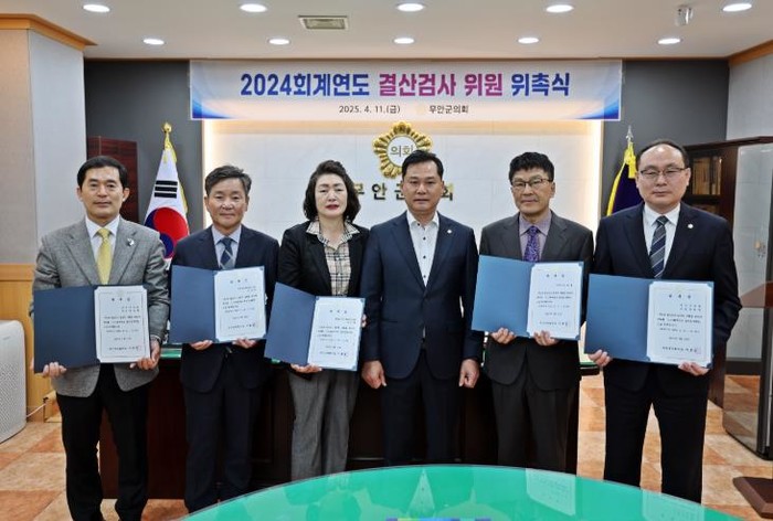 무안군의회는 4월 11일 오전, 2024회계연도 결산검사위원 위촉식을 열고 위원들에게 위촉장을 수여했다.