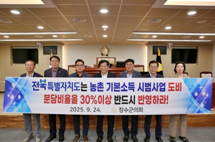 장수군의회는 “도비 분담비율 축소는 사업의 안정성과 지역 간 형평성을 크게 훼손하는 조치로서 절대 수용할 수 없다”며, “농어촌 기본소득 시범사업이 흔들림 없이 추진되기 위해서는 도비 분담비율을 최소한 30% 이상 확보해야 한다”고 강조했다.