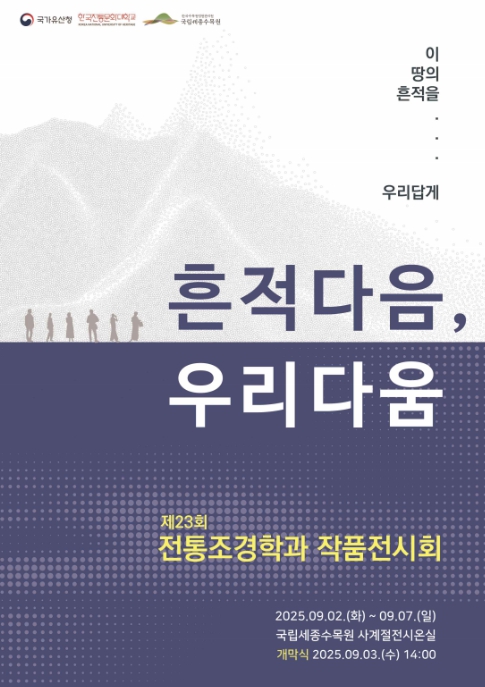 국가유산청 한국전통문화대학교는 오는 9월 2일부터 7일까지 국립세종수목원 사계절전시온실에서 ‘흔적다음, 우리다움’을 주제로 '제23회 전통조경학과 작품전시회'를 개최한다.