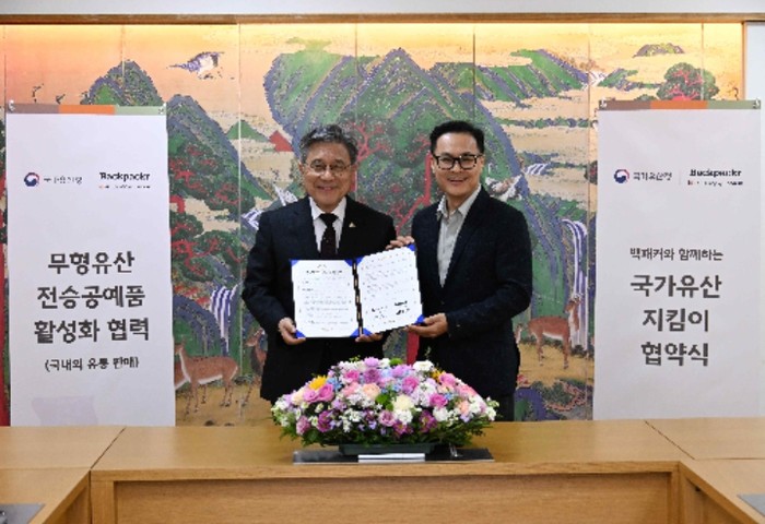 국가유산청은 온라인 상거래(커머스) 기업 ㈜백패커와 11월 21일 오후 2시 국립고궁박물관 회의실(서울 종로구)에서 무형유산 전승 활동지원 등을 위한 국가유산지킴이 협약을 체결했다.