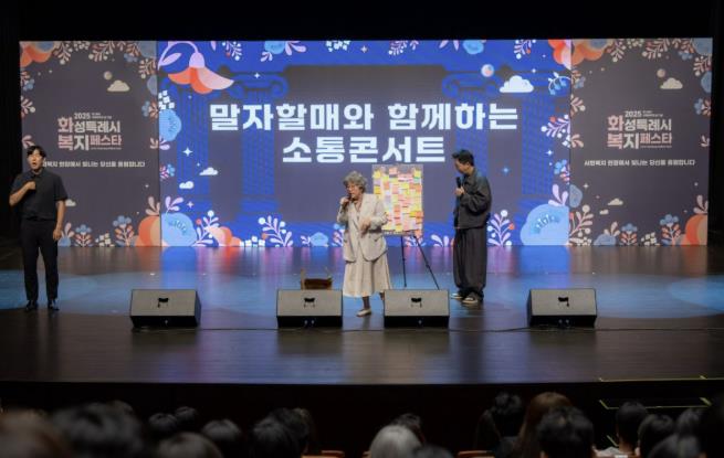 2부 행사에서는 코미디언 ‘말자할매’ 김영희와 정범균이 출연한 토크콘서트가 열려 복지종사자들의 고민을 유쾌한 입담으로 풀어내며 웃음과 공감을 이끌었으며, 화성아트홀 로비에서는 ‘스틱 잡기’와 ‘9.11초를 잡아라’ 등 체험 부스가 운영됐다.