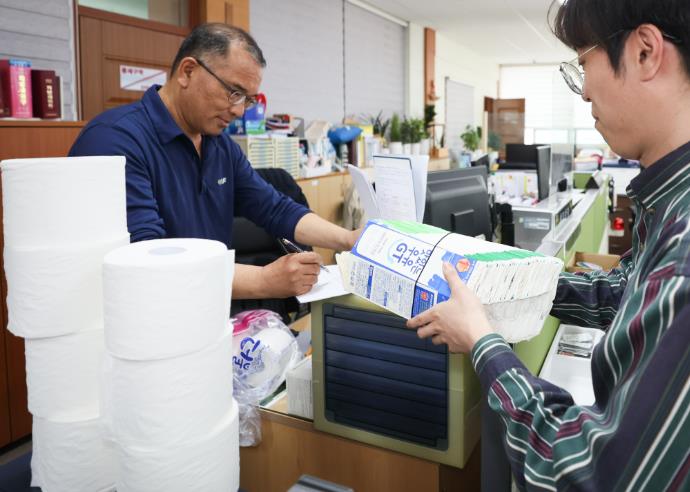 우유팩‧폐건전지 등 재활용품 모아오면 화장지 등 생활필수품으로 교환