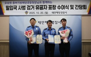 중부해경청장, 태안 해상 밀입국 사범 검거 유공자 격려