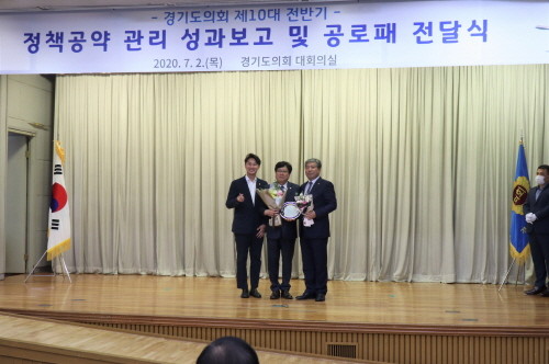 송한준 의장은 “전국 시도의회에서 아무도 가지 않은 길에 경기도의회가 처음 발자국을 내고, 제10대 의회는 정치에서 가장 중요한 신뢰를 세우고자 정책공약 실현에 매진했다”며, “지방의회 의정활동에 새로운 전환점을 마련한 데 노력해주신 고마움을 담아 공로패를 드린다”고 말했다.