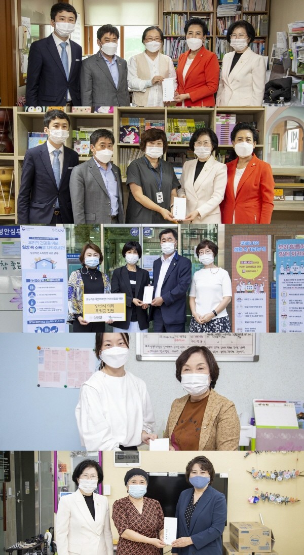 박은경 의장과 유재수 기획행정위원회 간사, 이진분 문화복지위원회 간사, 김진숙 도시환경위원회 간사, 주미희, 송바우나, 추연호, 이경애 의원은 지난 25일 평생교육시설 ‘안산용신학교’와 ‘효누리 주야간보호센터’, 지역아동센터 ‘선부어울’·‘해오름’·‘징검다리’ 등 지역 사회복지시설 5곳을 잇달아 방문해 의회 차원에서 마련한 소정의 위문금을 전달하고 기관 별 애로사항을 청취했다.