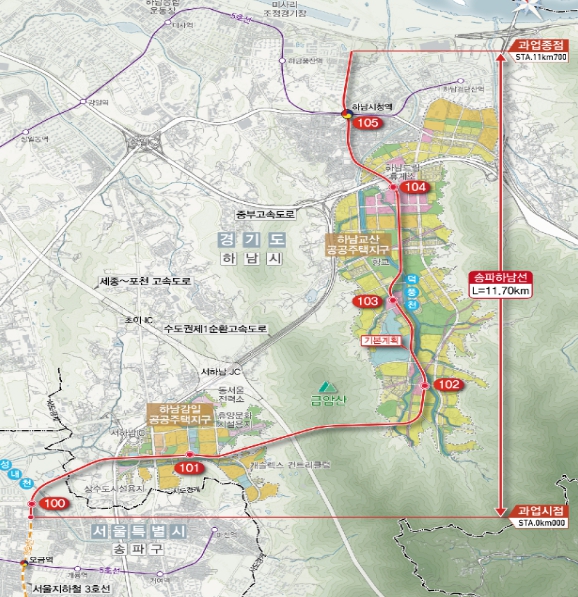 국토교통부 대도시권광역교통위원회는 서울지하철 3호선 연장사업인 ‘송파하남선 광역철도’의 기본계획을 7월 22일 승인할 계획이다.