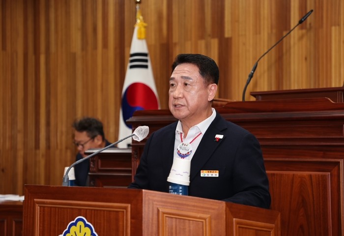 정영철 군수는 이날 군의회 본회의장에서 ‘2025 영동세계국악엑스포’를 성공적으로 개최해 영동군 발전의 전환점으로 삼겠다는 의지를 밝혔다. 또한 민선8기 후반기를 맞아 새로운 각오와 도전정신으로 날마다 새로운 변화를 이루겠다는 의지를 담은 ‘영동일신(永同日新)’을 내년도 신년화두로 밝히며 군정 운영 방향과 예산안을 설명했다.