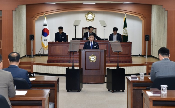 ▲ 김제시의회 제2차 정례회 시정연설하는 정성주 김제시장 |