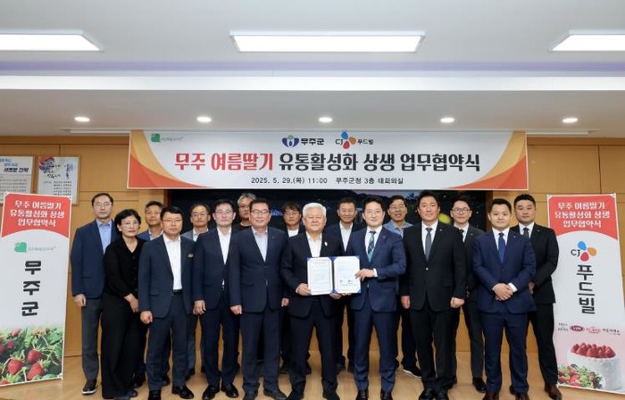 무주군은 지난 29일 CJ 푸드빌과 여름딸기 유통 협업을 위한 업무협약(MOU)을 체결했다.