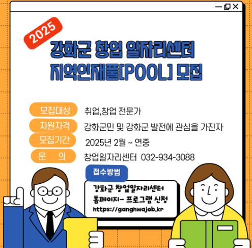 강화군 창업․일자리센터가 ‘2025년 강화군 지역 인재풀’ 참가자를 모집한다고 밝혔다.