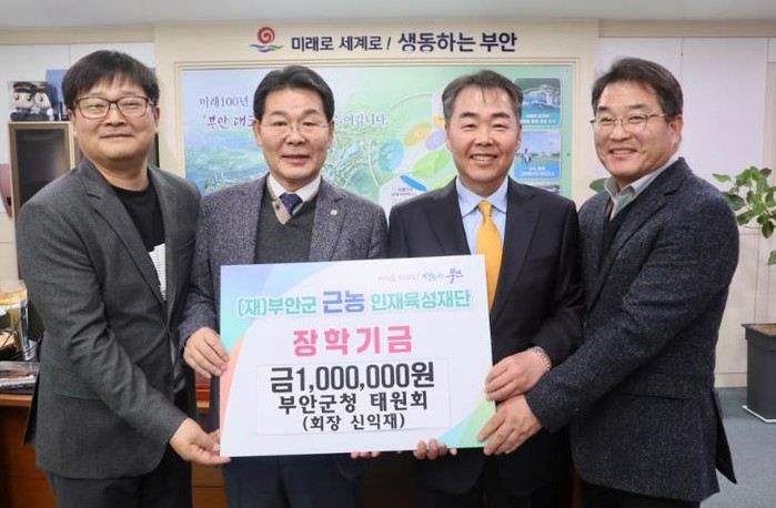 권익현 부안군 근농인재육성재단 이사장은 “솔선해 기부해 주시는 여러분이 있기에 지역인재 육성을 위한 장학금이 유지될 수 있다”며 “지역 학생들을 위해 장학금 기부에 동참하는 태원회 회원들이 공직자로서 타의 모범이 돼 기쁘다”고 말했다.