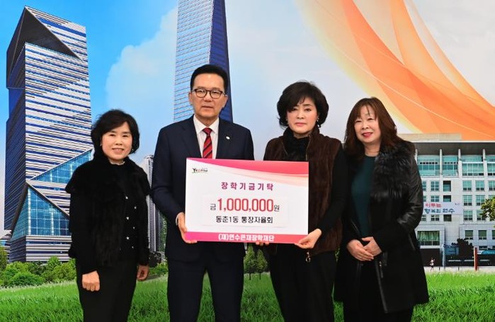 연수구통장연합회와 동춘1동 통장자율회가 지난 14일 지역인재 육성을 위해 써달라며 연수큰재장학재단에 각각 200만 원, 100만 원을 기탁했다.