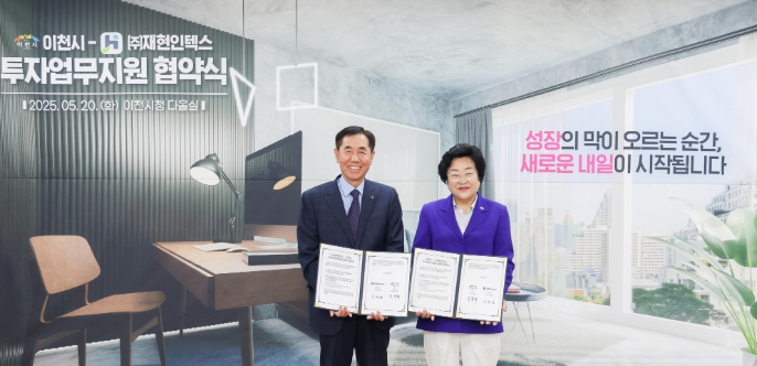 이천시는 5월 20일 시청 5층 다올실에서 ㈜재현인텍스와 신규 투자유치를 위한 업무협약(MOU)을 체결했다고 밝혔다.