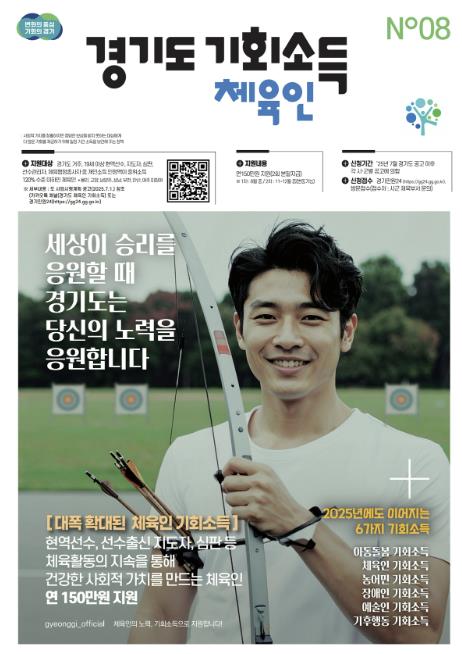 ‘경기도 체육인 기회소득 지원 사업’은 시장에서 정당한 보상을 받지 못하는 체육인에게 기회소득을 지급해 안정적인 체육 활동을 이어갈 수 있도록 지원하는 제도다. 이를 통해 전문체육인의 생활체육 분야 기여 확대와 생활체육인의 기량 향상을 도모하는 것을 목적으로 한다.