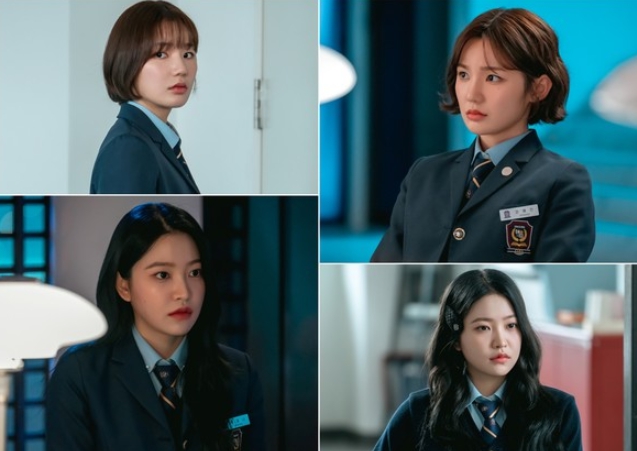 시즌 1의 충격적 사건인 김해인(장성윤 분) 추락 이후, 침묵의 대가로 청담국제고에 전학 온 ‘김혜인’(이은샘 분)과 청국고 권력의 정점에 선 ‘백제나’(김예림 분)로 완벽 변신한 두 배우의 카리스마가 단숨에 시선을 사로잡는다.