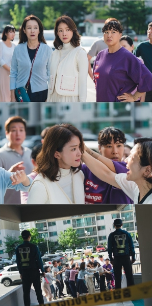 이와 함께 웅성거리는 주민들에게 둘러싸인 공미리(이시영 분), 추경자(정영주 분), 전지현(남기애 분)은 한 여성과 살벌한 신경전을 벌이며 시선을 강탈한다.