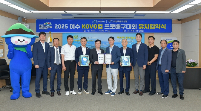 여수시는 지난 24일 시청 상황실에서 한국배구연맹(KOVO)과 ‘2025 여수 코보(KOVO)컵 프로배구대회’ 유치 협약을 체결했다.