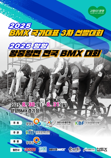 양양군은 오는 8월 30일부터 31일까지 양양 BMX경기장에서 '2025 양양 왕중왕전 전국 BMX 대회 및 국가대표 3차 평가전'을 개최한다.