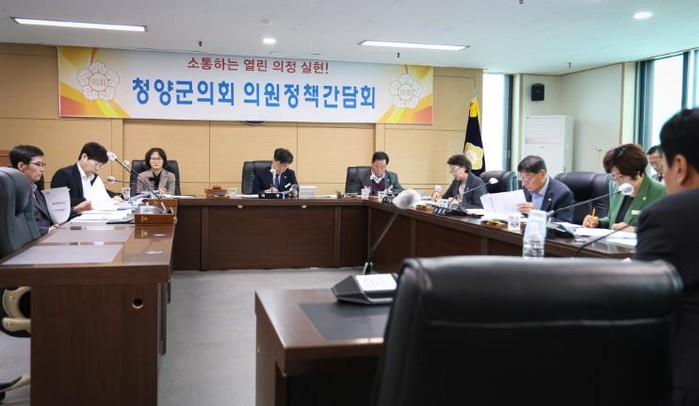 청양군의회는 25일 특별위원회 회의실에서 의원 및 부서장이 참석한 가운데 제310회 임시회를 앞두고 의원 정책간담회를 진행했다.