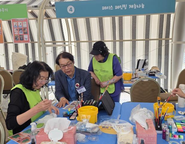 용인시자원봉사센터 페이스페인팅 봉사단 부스를 방문하여 함께 행사 진행