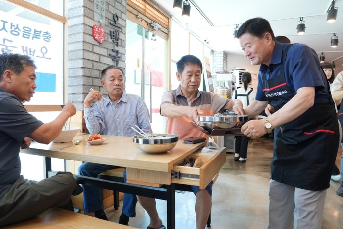 김영호 음성군의회 의장은 지난 7월 25일 음성읍 음성천서길에 위치한 ‘오백국수 2호점’을 찾아 하루 동안 일일점장으로 나서며 자활근로사업에 참여 중인 주민들과 특별한 시간을 보냈다.