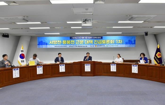 광주광역시의회에서 서방천과 용봉천 인근의 상습침수 원인과 대책 마련을 위한 재난대응 릴레이 정책토론회가 열렸다.