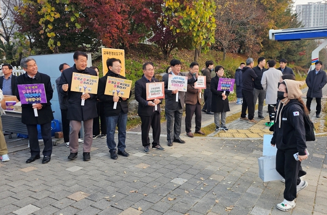 진천군의회 의원 일동은 13일, 2026학년도 대학수학능력시험이 치러지는 진천고등학교와 서전고등학교를 찾아 수험생들의 용기를 북돋웠다.