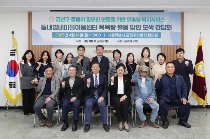 금천구의회 윤영희 의원(국민의힘, 시흥2,3,5동)은 4월 14일 오후 3시 금천구의회 대회의실에서 "돌봄이 필요한 분들을 위한 맞춤형 복지서비스 확대 및 동네방네마을이음센터 목욕탕 활용 방안 모색" 간담회를 주관했다.