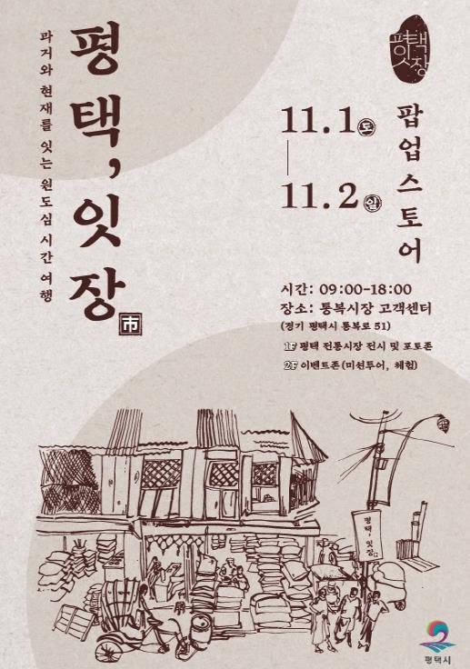 평택시는 오는 11월 1일부터 2일까지 통복시장 고객 쉼터 일대에서 평택 원도심 관광 활성화를 위한 ‘평택, 잇장’반짝 매장(팝업 스토어)을 연다.